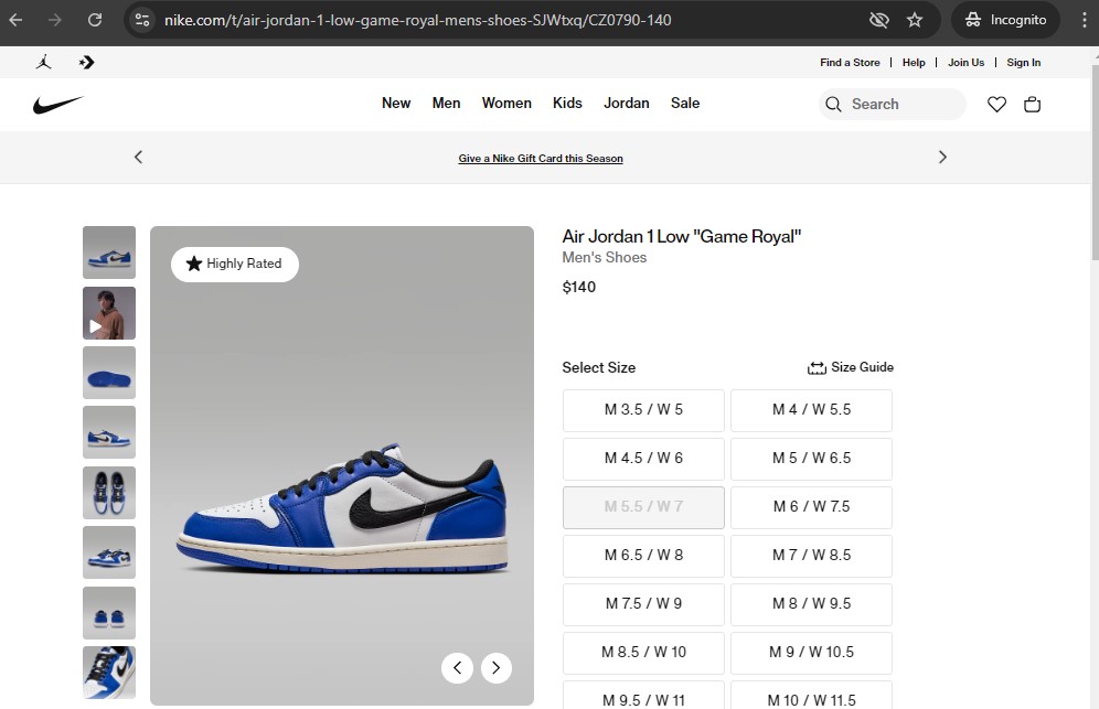 以https://www.nike.com/t/air-jordan-1-low-game-royal-mens-shoes-SJWtxq/CZ0790-140為例